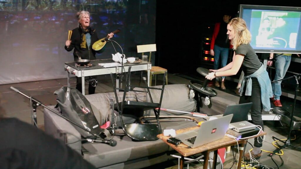 A Pink Chair (In Place of a Fake Antique) was co-commissioned by Instytut Adama Mickiewicza, Poland, and the Richard B. Fisher Center for the Performing Arts at Bard College where it premiered at the Bard SummerScape Festival in 2017.