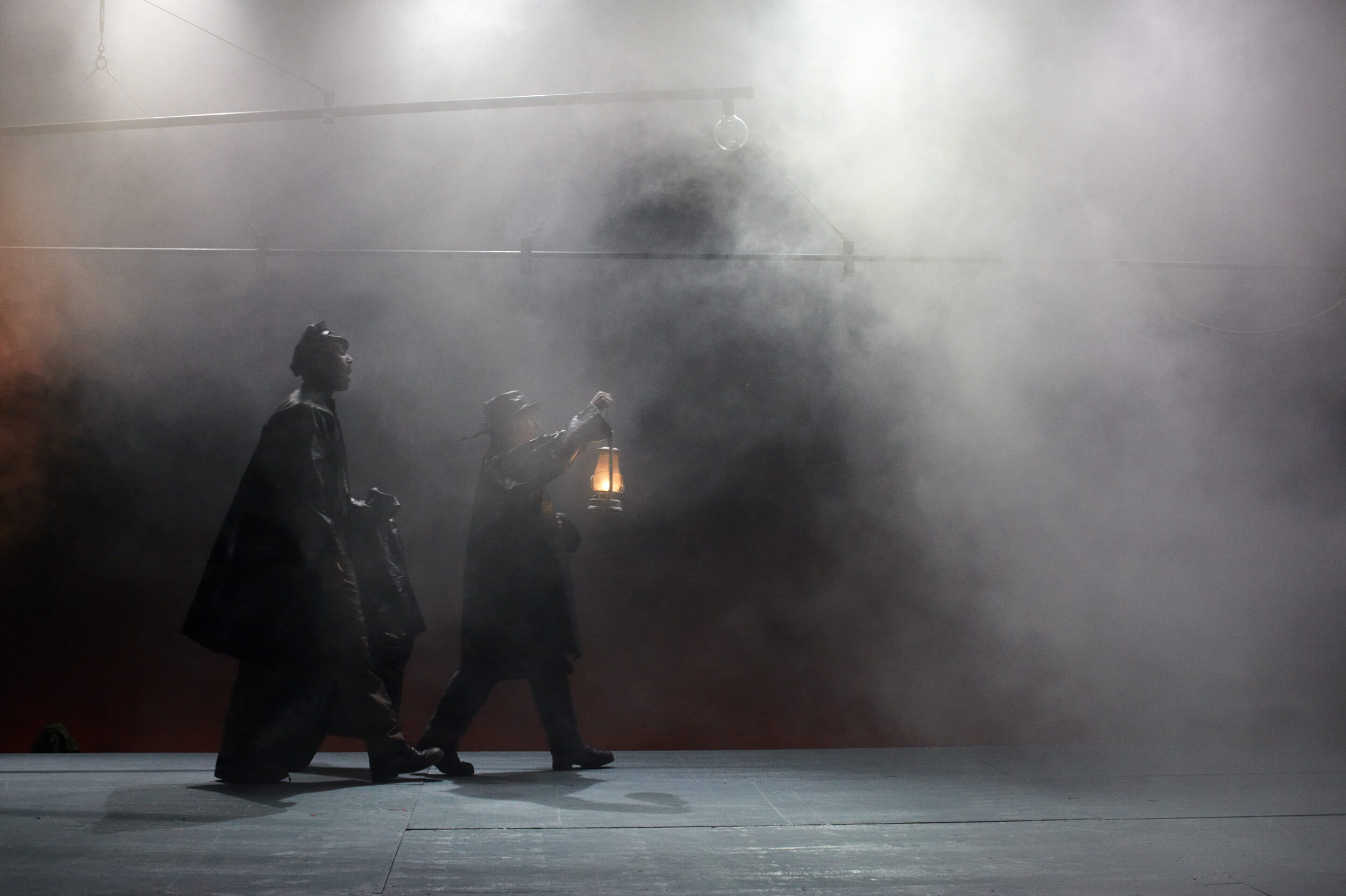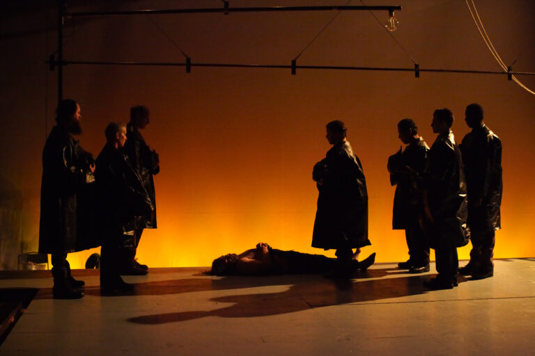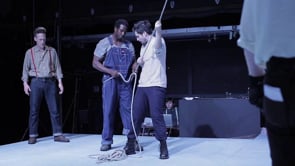 The Wooster Group invited Richard Maxwell of New York City Players to direct Eugene O’Neill’s early “Glencairn” plays: Bound East for Cardiff (1914), The Long Voyage Home (1917), and The Moon of the Caribbees (1918). The resulting production, Early Plays, takes O’Neill’s tales of sailors on and off the ocean and explores themes of longing and eternity. Dark episodes showing the underside of turn-of-the-century maritime life – brawls, dances, and carousing — are threaded together with haunting melodies composed by Maxwell. The Early Plays company included performers and technical artists from The Wooster Group and New York City Players.