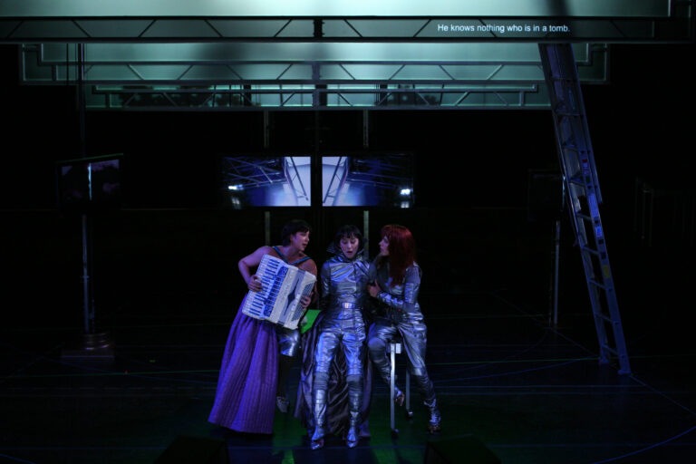 In The Wooster Group’s production of La Didone, Francesco Cavalli’s 1641 opera collides with Mario Bava’s cult movie Terrore nello spazio (1965), forming a synergy between early baroque opera and pre-moonlanding sci-fi.