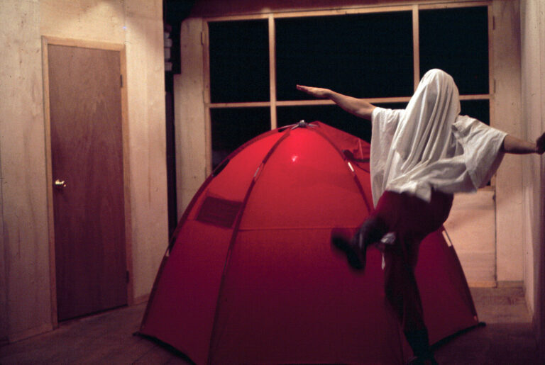 Rumstick Road takes the form of a scientific demonstration exploring the suicide of Spalding Gray’s mother by weaving together dance, slides, and audio recordings of Gray’s father, grandmothers, and his mother’s psychiatrist.