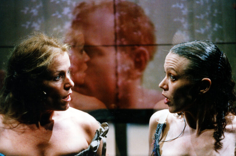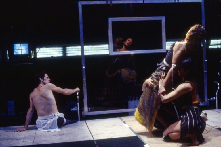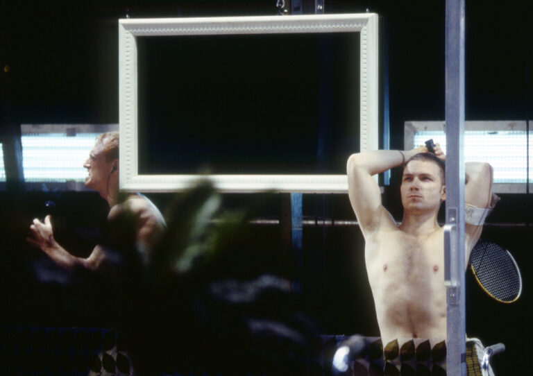 Jean Racine’s tragedy Phèdre, translated by Paul Schmidt and re-set on a raised platform which serves both as Phaedra’s court and a French badminton court. Badminton is played, and the Queen meets her fate among sliding plexiglass panels, omnipresent monitors, hidden cameras, and an invisible swimming pool.