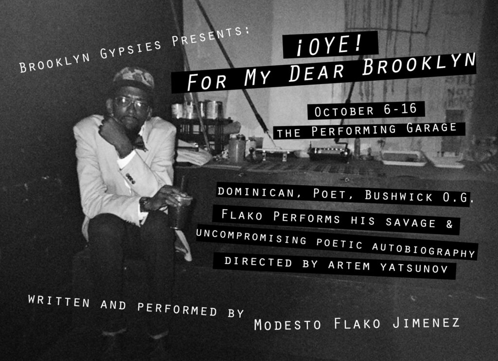 Modesto Flako Jimenez is a Dominican-born, Bushwick-raised theater director, writer, poet, actor, producer, and educator. ATI & HOLA Award Winner, NY Times and Wall Street Journal profiled, “Flako” is best known for original productions and three signature festivals – Ghetto Hors D’Oeuvres, One Catches Light, and Oye! Avant Garde Night! – produced with his company Brooklyn Gypsies Collective. Flako has appeared on TEDxBushwick, Comedy Central’sThe Daily Show with Jon Stewart, Favorite: Early Shaker Spirituals (Wooster Group), Last Night At The Palladium (Bushwick Starr/3LD), Yoleros (Bushwick Starr/IATI theater), Conversations Pt.1: How To Make It Black In America (JACK). Take Me Home (3LD/ Incubator Arts Project). Upcoming: Oye For My Dear Brooklyn (The Performing Garage), Furry by William Burke (Bushwick Starr), Samara by Richard Maxwell (SoHo Rep; dir. Sarah Benson). Modesto received the 2016 Princess Grace Award Honorarium in Theater.
