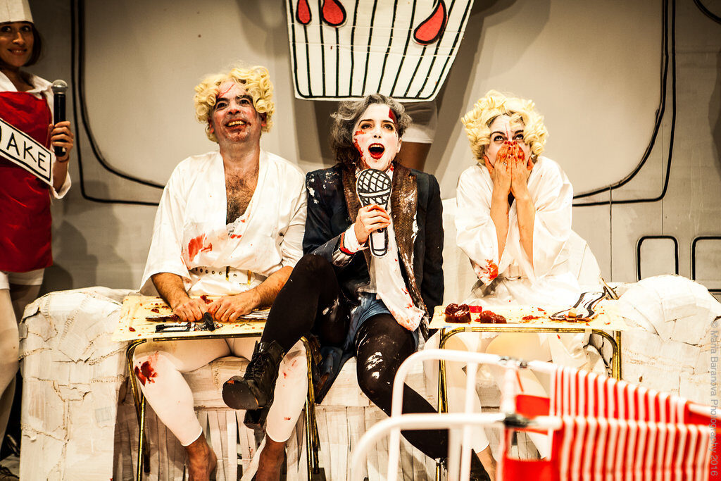 Over the years, Radiohole has earned a reputation as one of New York’s most tenacious and uncompromising ensembles. Known for daring productions that synthesize elaborate visual design, powerful thematic material, and audacious performance Radiohole has been called the “leading innovator in New York’s third wave of avant-garde theater” by Time Out New York. Since the company’s inception in a Brooklyn basement in 1998 the company has created more than 11 original works which have toured both nationally and internationally, and are presented at New York City venues including Performance Space 122, The Kitchen, and the Collapsable Hole. Radiohole’s awards and commissions include Mass Live Arts, Performance Space 122, The Kitchen, The Walker Art Center, and the Andy Warhol Museum through the Spalding Gray Award among others. Their most recent work Myth (or maybe Meth) was nominated in 2014 for a Bessie award and received wide critical acclaim for their intensely stupid, painfully beautiful, and wildly uproarious revival of a play by Tom Murrin.